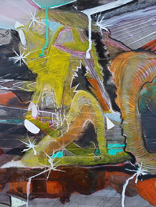 Acrylic paint ink repurposed acrylic paper 147x116cm